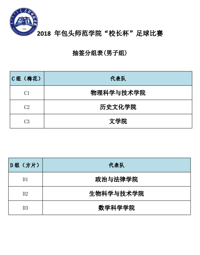 B组:文学院、生物科学与技术学院、数学科学学院、政治与法律学院、美术学院。