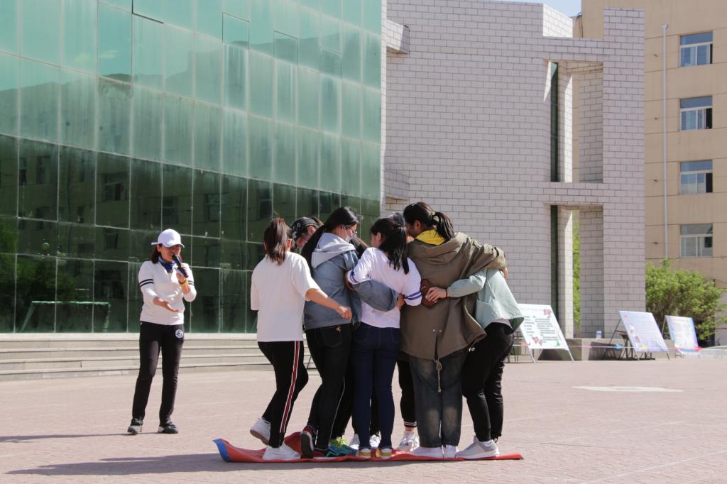 美术学院学工办主任康树林和数学学院学工办主任宋金锦组织了团体心理拓展活动。16个学院代表队,共128名同学参加了“珠行万里”、“不倒森林”和“翻叶子”等团体拓展活动。现场气氛热烈,学生参与活动积极性高。