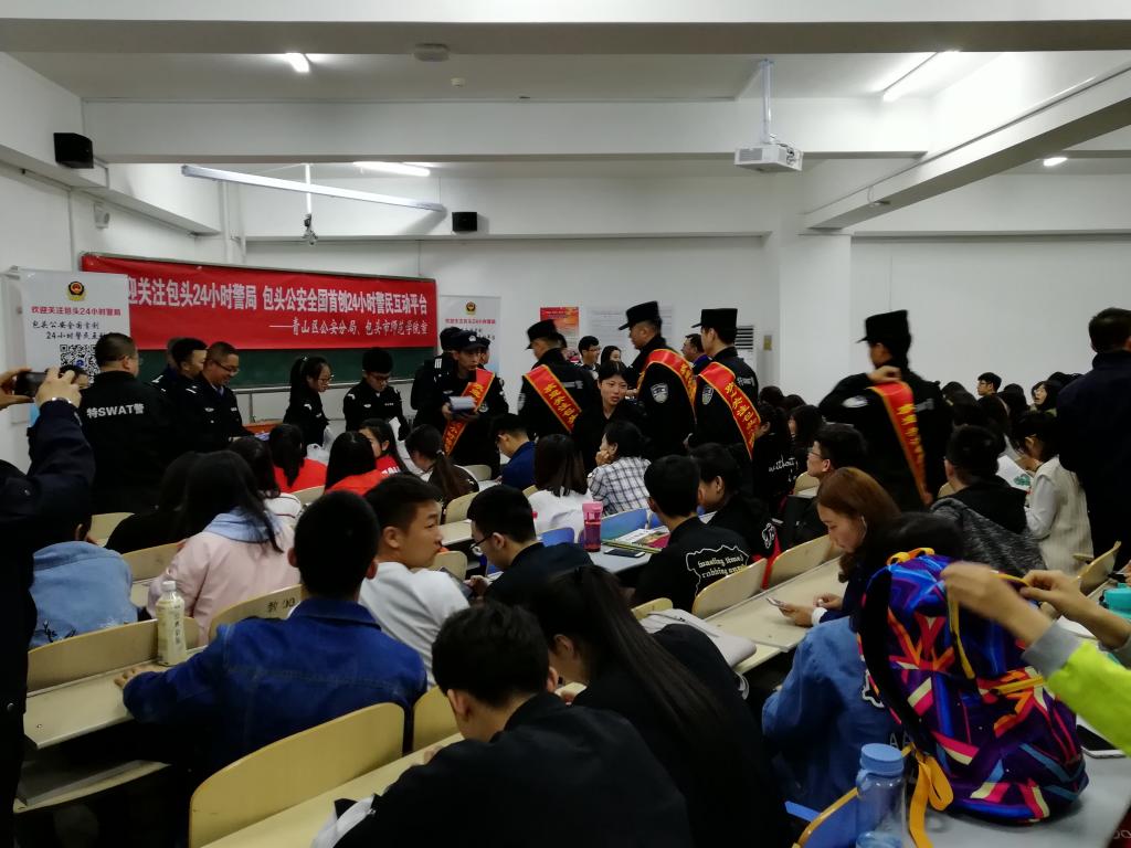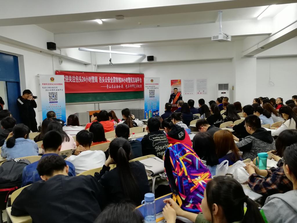 活动中,青山区公安分局警官对包头市“24小时警局”微信平台进行了宣传推介,结合学生日常生活和校园安全注意事项介绍了“24小时警局”的功能和使用方法,希望广大同学关注“24小时警局”,增强安全防范意识,提高预防处置能力,发现违法犯罪行为及时报警,切实维护自身安全利益。陈永慧同志从宗教和邪教的本质、区别以及如何防范和抵制邪教、非法宗教渗透等有关知识进行了宣讲。