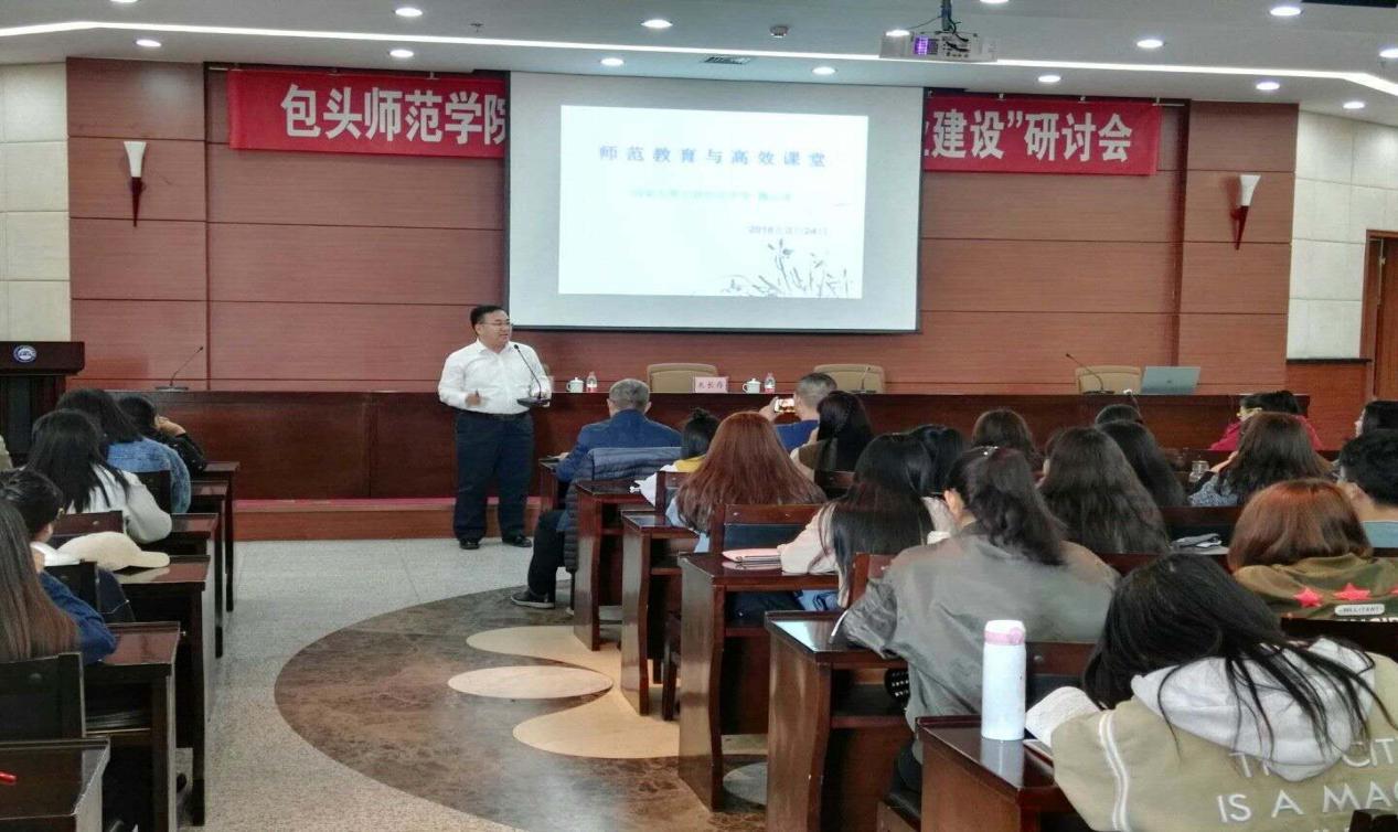 三是乌兰察布市新世纪中学魏山虎校长的专题讲座“师范教育与高效课堂”,魏老师就如何推进中学的德育工作和教育教学方式的改革进行了精彩的讲述,与全体思政专业学生展开热烈互动与交流。