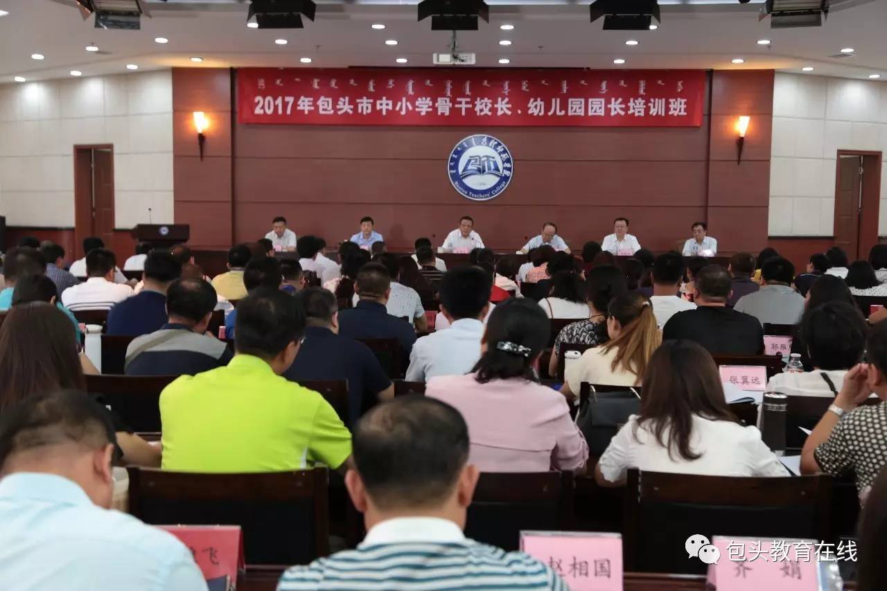 8月21日上午,2017年包头市中小学骨干校长、幼儿园园长培训班开班仪式在我校图书馆会议厅隆重举行,全市160名中小学骨干校长(副校长)、园长(副园长)参加了开班仪式。开班仪式由市教育局党委书记、局长李占峰主持,市政府副市长白清元出席开班仪式并讲话。