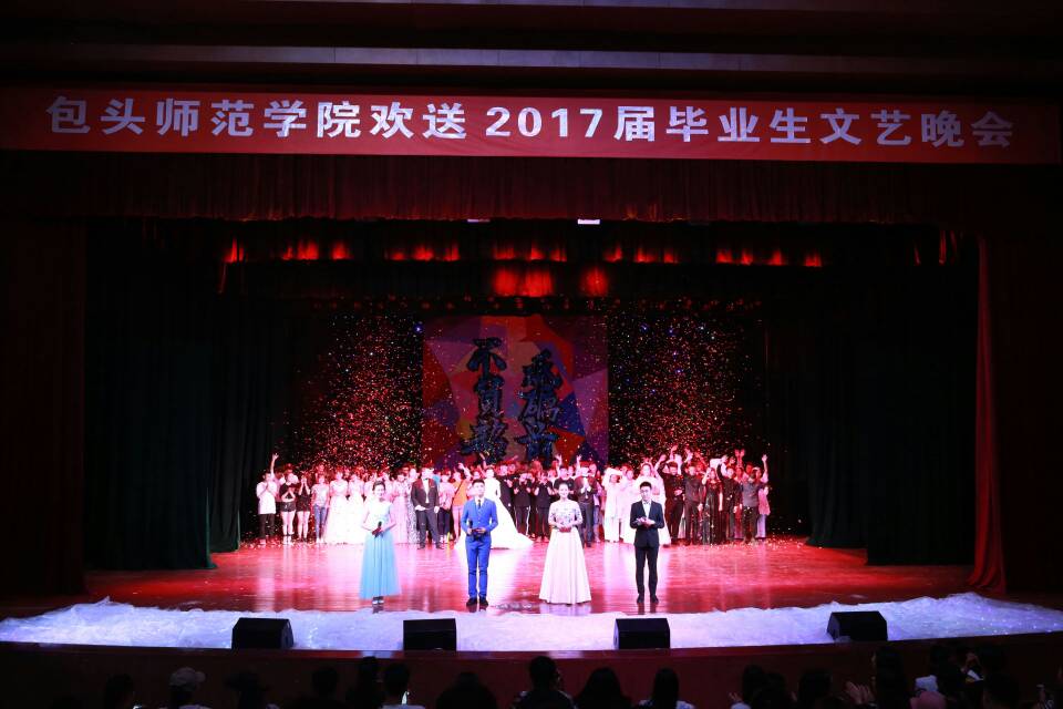 笑语欢声,吹响毕业号角;载歌载舞,共谱青春乐章。在喜迎内蒙古自治区成立七十周年之际,我们迎来了我校2017届学生毕业离校,为表达全校师生对毕业生的美好祝福,6月22日晚,由团委、校学生会主办的第十八届校园文化艺术节之“不负韶光,砥砺前行”欢送2017届毕业生文艺晚会在会堂精彩上演。校领导王永明、施纪华、双山以及各职能部门、二级学院的领导、老师与2017届毕业生代表观看了晚会。