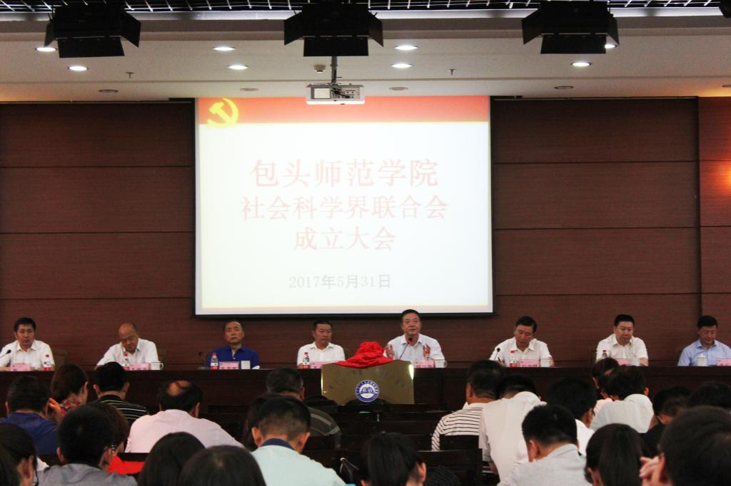 5月31日下午,包头师范学院在图书馆会议厅举办了社会科学界联合会成立大会。自治区社科联副主席胡益华、自治区社科联社团管理与社科评奖部部长张贵有、包头市社科联副主席梁义光,我校党委书记王永明,党委副书记、院长刘兴旺,党委委员、副院长王有亮,党委委员、副院长施纪华,党委委员、副院长双山出席大会,大会由双山同志主持。
