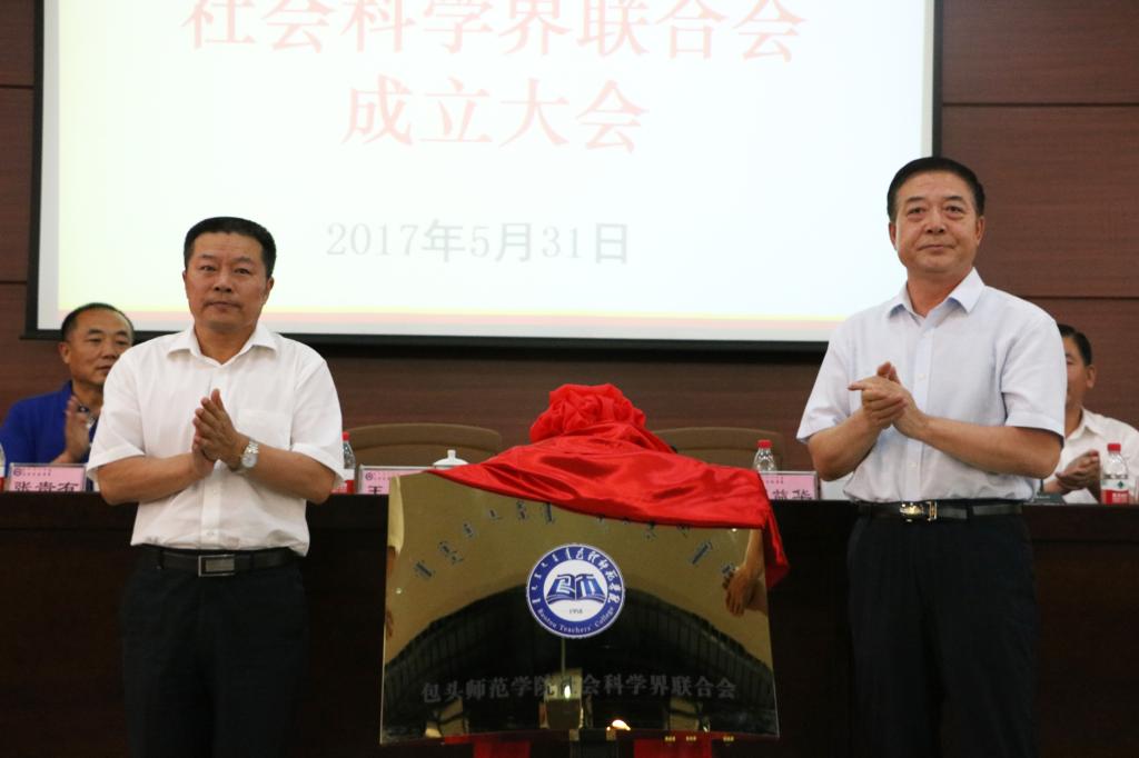 胡益华同志和王永明同志共同为包头师范学院社会科学界联合会进行揭牌。