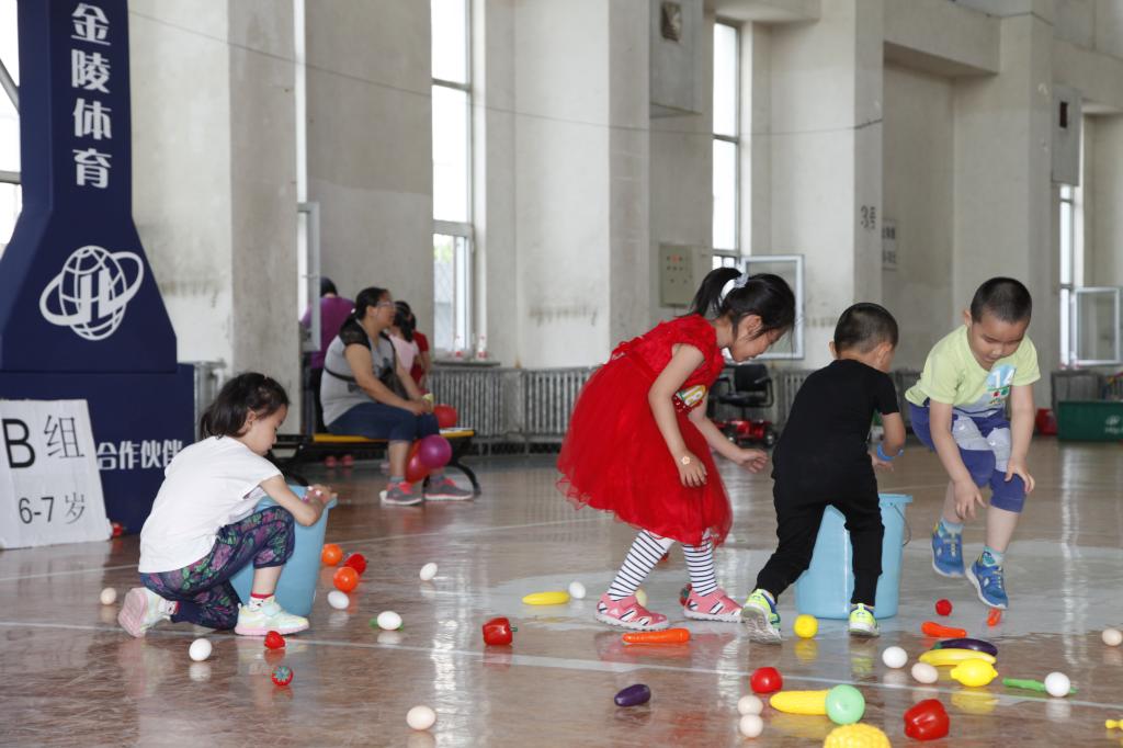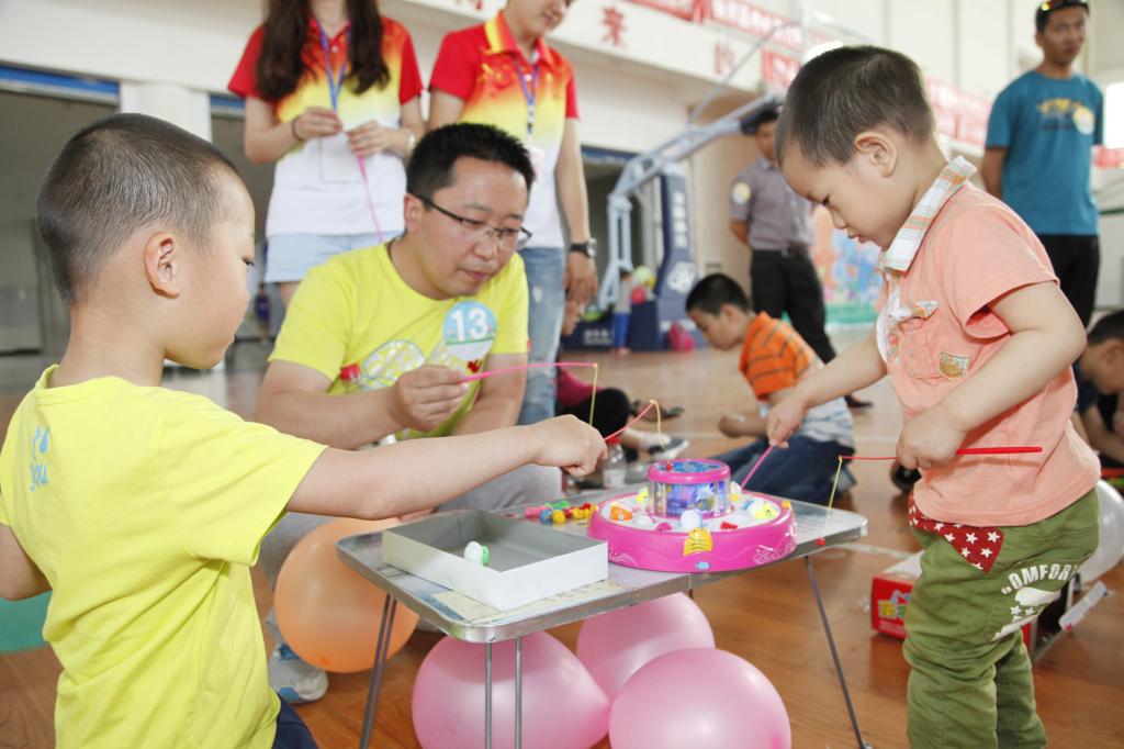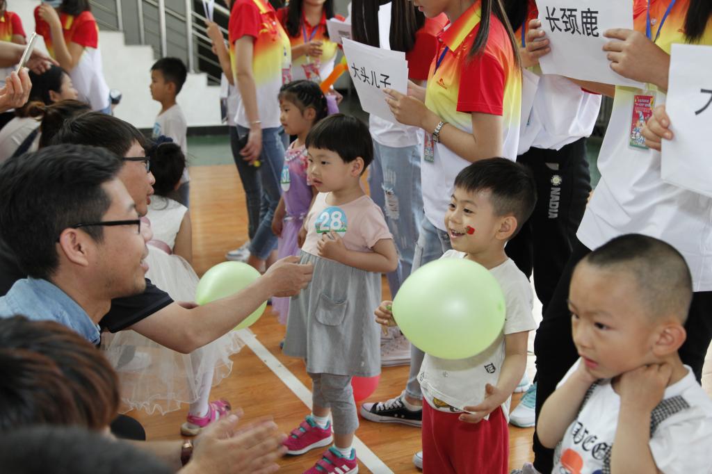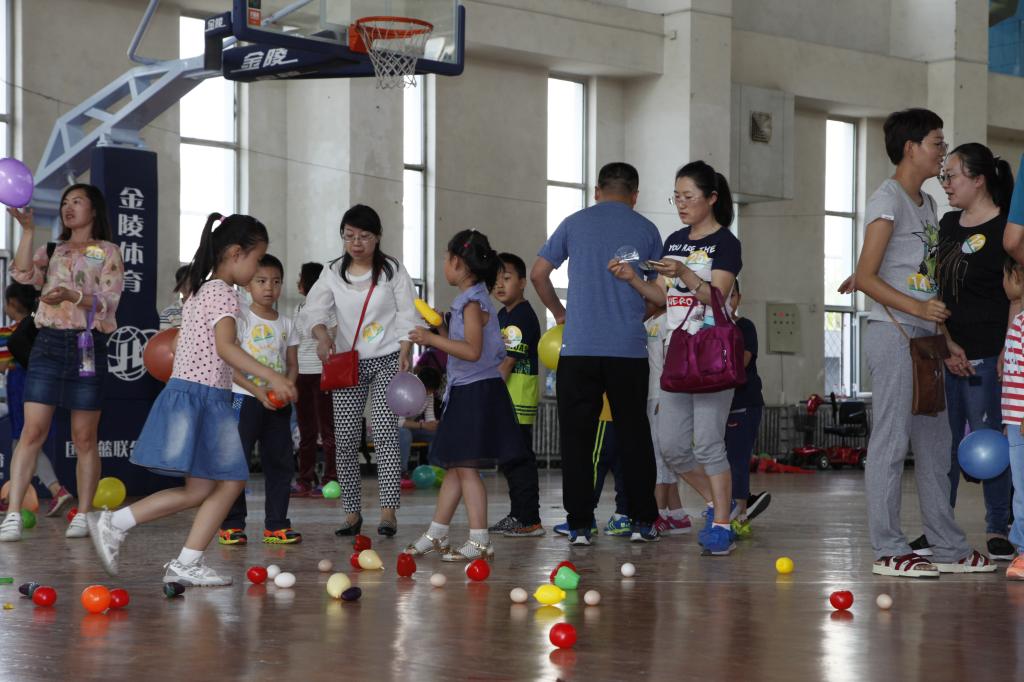 在孩子们热烈的欢呼声中“亲子运动会”正式拉开序幕。活动分三组进行,孩子年龄4-5岁为一组,6-7岁为一组,8-12岁为一组。活动项目有你做我猜,猴子运粮,同舟共济,三人四足和袋鼠接力等趣味游戏。游戏期间工作人员耐心细致地为各位家长和孩子们讲解游戏规则,而参赛的家长和宝贝也逐渐配合默契。家长陪着孩子们一起拼图,一起跳绳,一起唱歌,一起跳舞。宝贝们兴致高昂,手舞足蹈,他们天真活泼,时而捧着气球蹦蹦跳跳,时而拿起毽子笨拙的踢着,时而与其他小朋友打闹嘻戏,满场追逐,现场充满了欢声笑语。