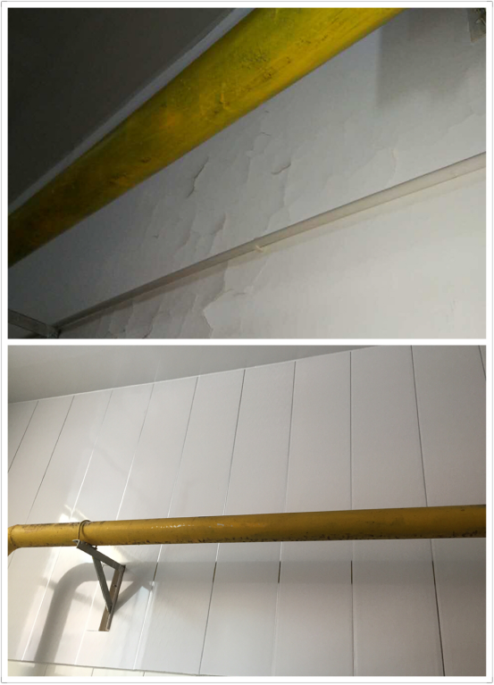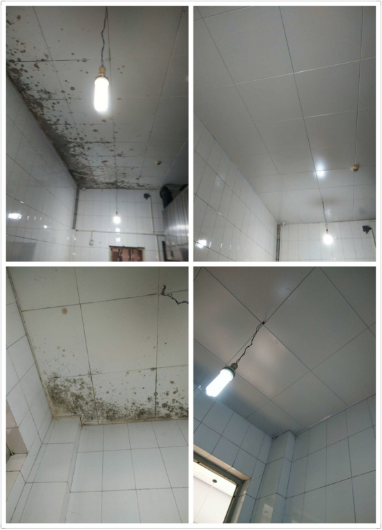 南院学生食堂一些操作间因蒸汽较大,部分墙体防水涂层开裂脱落、吊顶霉变。寒假期间,餐饮服务管理中心将霉变吊顶进行更换,还将400㎡左右开裂脱落防水涂层,全部更换成铝塑扣板,彻底解决了防水涂层开裂脱落的问题。