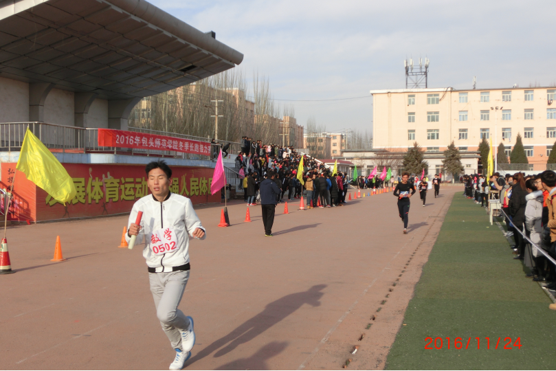 11月24日下午,2016年冬季长跑接力赛在学校田径场举行,学校党委书记王永明为比赛鸣枪。