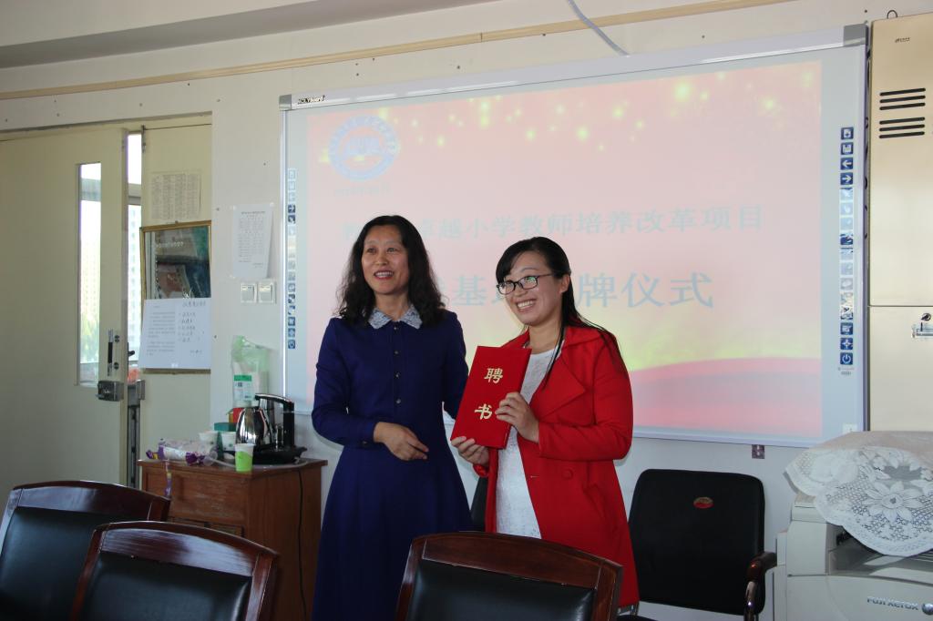 会议的第二项议程是由包头师范学院领导给三所基地校进行授牌,同时为基地校的首批教育部卓越小学教师培养改革项目实践导师颁发聘书。