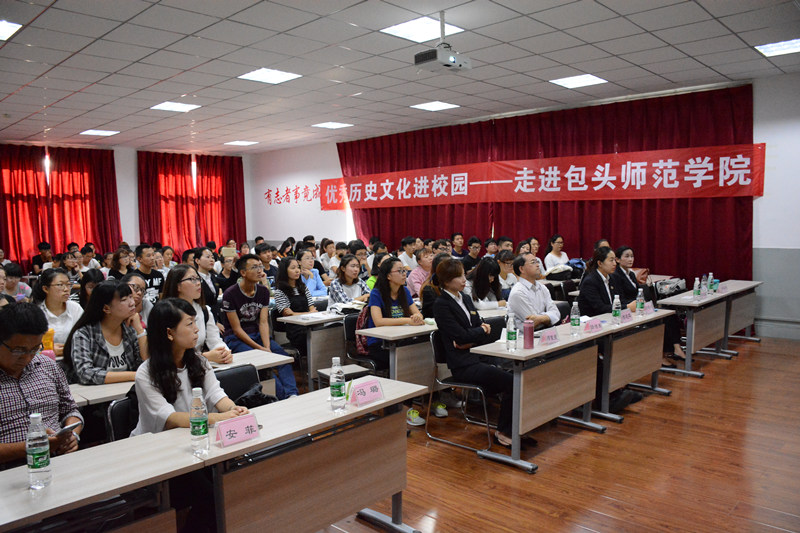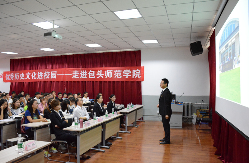 9月22日下午,由秦始皇帝陵博物院推出的“世界文化遗产进校园博物馆教育”活动第二次走进我校,在博物院社会教育部副主任任浩东带领下,讲解员郑芸菁、郑絮斐、张志威、刘婷婷、冯璐等一行七人,开展了主题为“优秀历史文化进校园——走进包头师范学院”的博物馆教育体验活动。本次活动面向我校历史学专业的150余名学生开展,历史文化学院副院长郝建平主持会议。