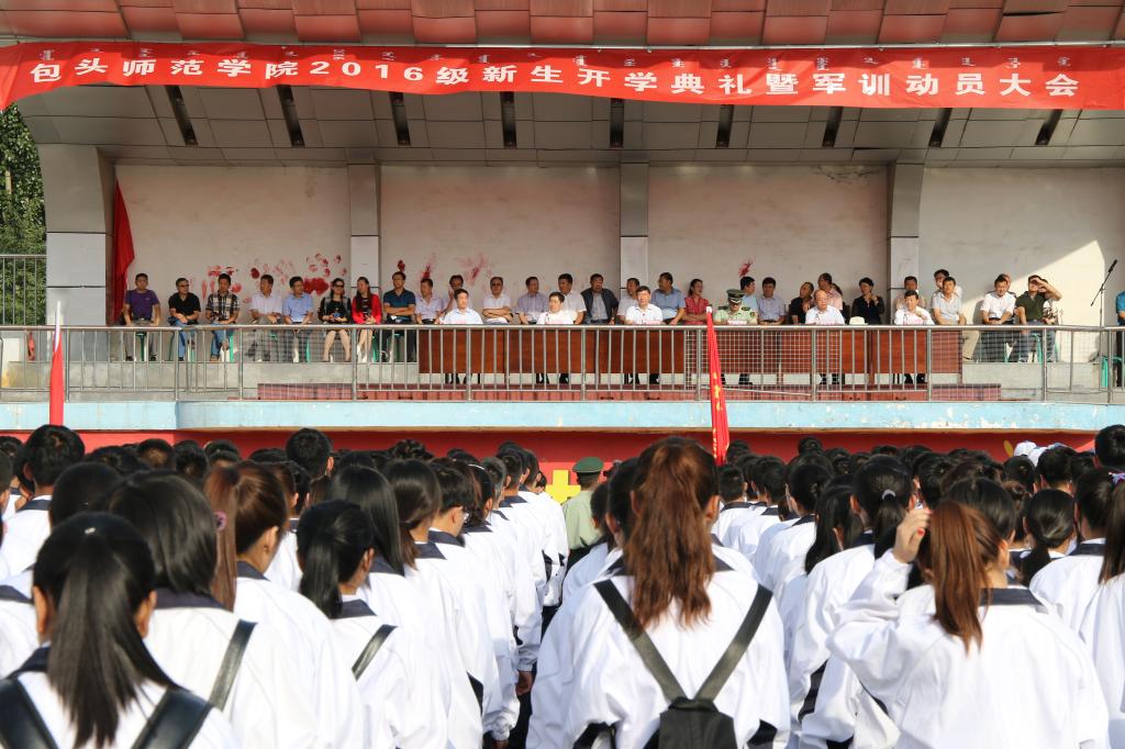 随后由党委副书记、院长刘兴旺向军训团授旗。学生工作部、武装部部长尚海涛宣读了《包头师范学院2016级新生军事技能训练工作方案》,就军训工作做了系统部署。