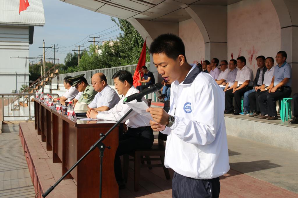 2016级文学院播音主持专业郝晨同学代表全体新同学,表达了进入包师的感受和对大学生活的渴望,表示要服从命令,听从指挥,认真完成军训任务,努力学好专业知识,力争成为一名合格的优秀大学生,为学校的不断发展增光添彩。