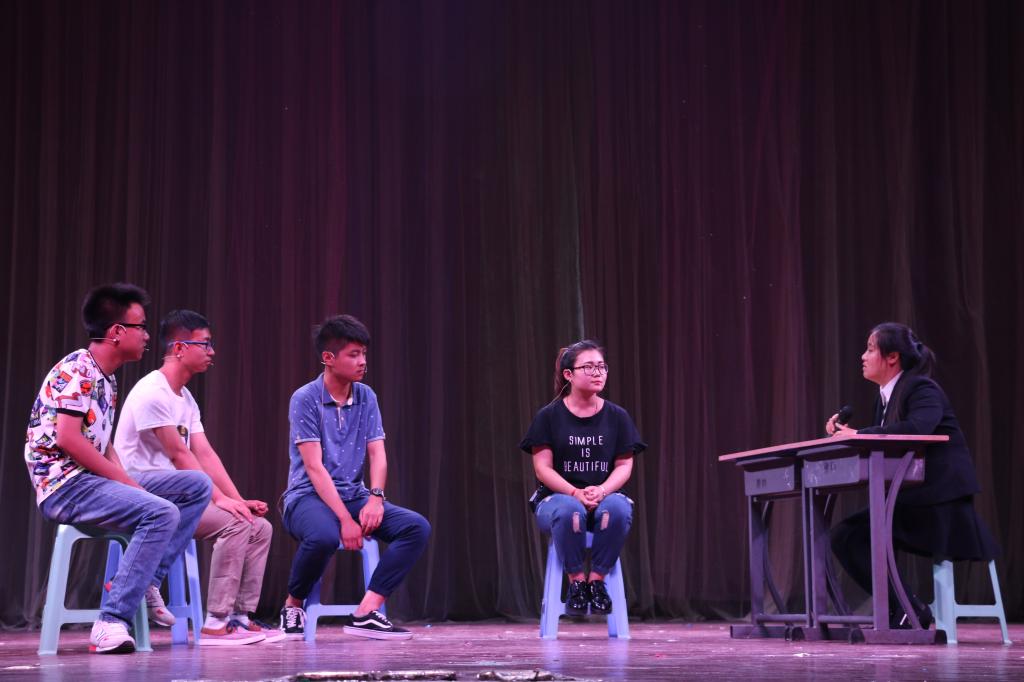 5月31日晚,我校第十届校园心理情景剧大赛决赛在会堂举行。校党委委员、副院长施纪华、宣传部部长史瑜、招生就业处处长张宗祥、学生工作部部长尚海涛、学生工作部副部长蒋永祎、各二级学院分管学生工作领导、学工办主任、心理辅导站站长、各学院学生代表观看了比赛。本次决赛的评委由学生工作部副部长郭志峰、学生教育管理科科长刘运合,教育科学学院心理学副教授陆畅,经济与管理学院学工办主任袁爱荣、外国语学院学工办主任姜雪担任。