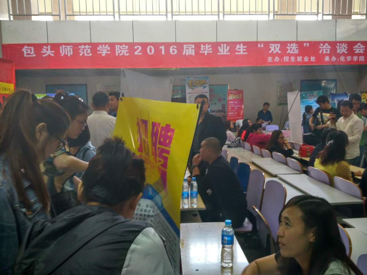 5月26日下午,由招生就业处主办、化学学院承办的2016届毕业生双选洽谈会在博学楼一楼大厅拉开帷幕。学校招生就业处处长张宗祥、就业指导中心负责人严红利、化学学院党总支书记史继敏、副书记冯丽、学工办主任韩泽红到招聘会现场进行指导。