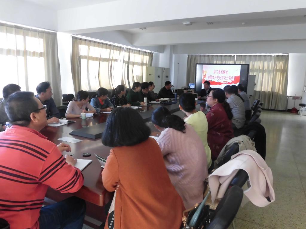 10月15日下午,为全面落实中共中央纪委《关于认真开展学习贯彻<中国共产党纪律处分条例>的通知》精神,使全体党员干部准确把握《中国共产党纪律处分条例》(以下简称《条例》)精神实质,推进二级学院开展《条例》的学习宣传、贯彻落实工作,校党委副书记、院长刘兴旺深入资源与环境学院,为全体党员干部做了题为“学习贯彻解读《中国共产党纪律处分条例》”的专题党课。资环学院全体党员干部参加了学习。