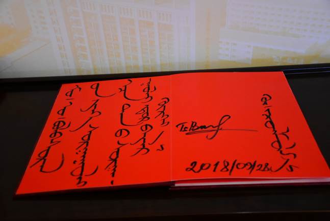 蒙古国立教育大学副校长玆·博尔玛为校史馆题词