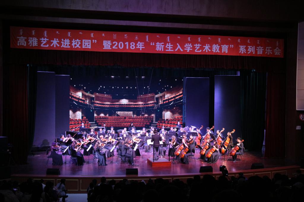 “高雅艺术进校园”活动是推动和深化学校艺术教育常态化建设,服务学生人文素质发展,弘扬传统文化,提升校园文化品位,丰富校园文化生活的有效活动载体,旨在将高雅艺术融入校园文化建设,达到艺术教育“润物无声、育人无形”的效果。我校作为一所有着深厚文化底蕴的高校,高度重视大学生艺术教育,此次将“高雅艺术进校园”活动与“新生入学教育”有机结合,为大学生提供了一个更好地亲近艺术、提升艺术素养、感受艺术魅力的平台。预计学校于11月开展的2018年度“新生入学艺术教育”活动共将举办6场音乐会,内容涵盖中国民乐、交响乐、马头琴及蒙古族音乐等。望广大师生继续关注并积极观看演出。(宣传部)