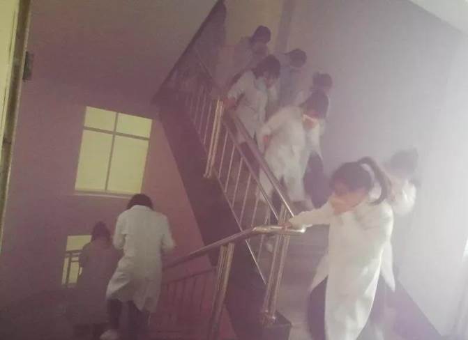 下午16点30分,演练开始,实景模拟生化实验楼多处起火,楼道内烟雾弥漫,消防应急预案立即启动,警报声随之响起,指挥员下达疏散命令后,各实验室参演师生,在工作人员的引导指挥下,用湿手帕、湿毛巾等捂住口鼻,弯腰沿着疏散通道迅速有序疏散。随后在生化楼前集合,清点人数,保卫处消防科科长就疏散情况进行通报,就疏散中存在的问题,进行点评,并强调一旦真实火情发生,必须严格按照疏散要领迅速疏散。