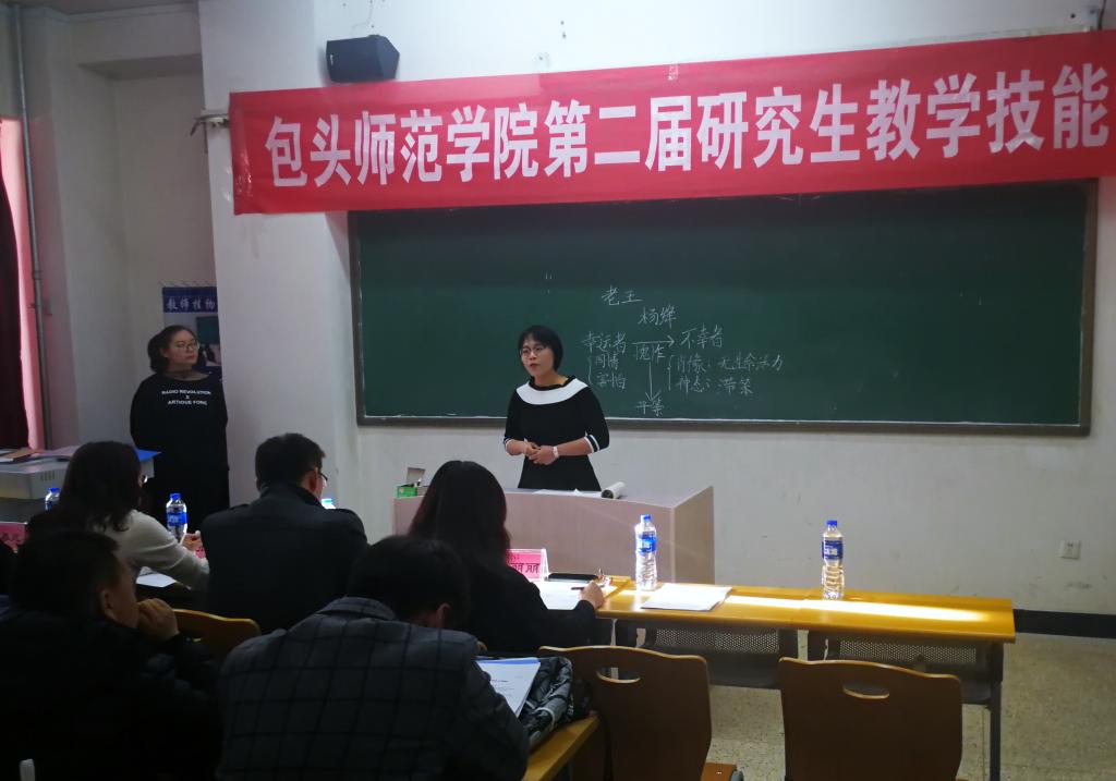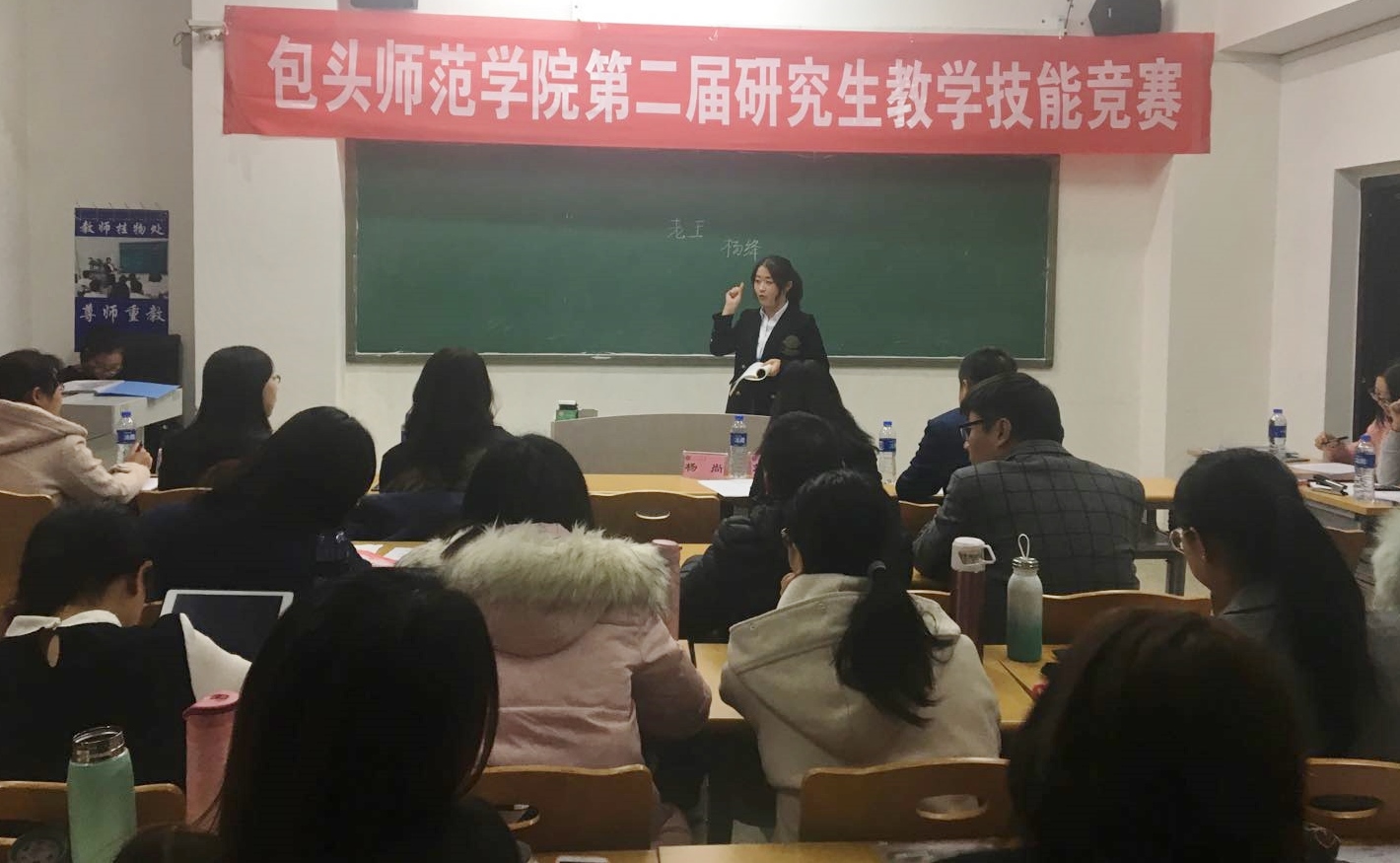 为进一步加强我校研究生教学技能的学习,激发学习热情,提升就业能力,11月22日下午,包头师范学院第二届研究生教学技能竞赛决赛在新逸夫楼406教室举行。经过6个学院初赛推选的14名选手参加了决赛。决赛的评委老师有数学科学学院副院长杨尚老师,政治与科学学院张春梅教授,文学院刘丽丽副教授,教育科学学院王月莲副教授,物理科学技术学院田春凤博士。比赛包括教学设计,模拟上课,教育机制问答三个环节。