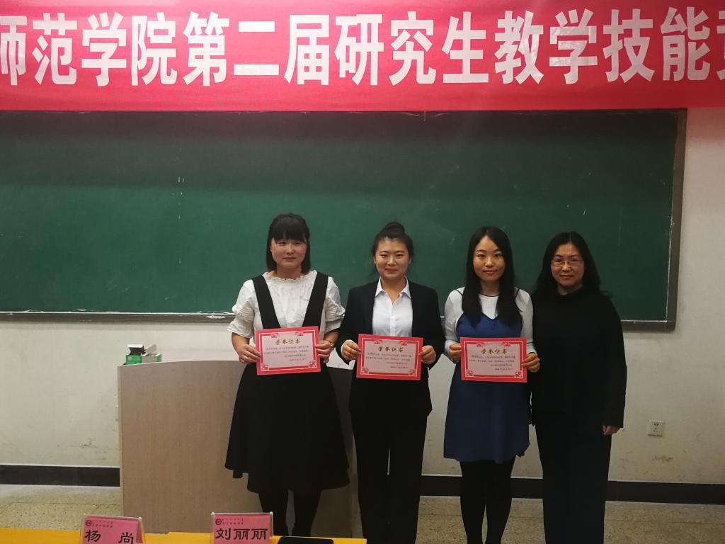 比赛现场,各个选手展现了较强的专业素质和良好的精神风貌,给观众展现了一场精彩纷呈的教学技能,选手们娴熟的讲课技巧赢得现场观众阵阵掌声。比赛中场和结束后,杨尚、刘丽丽和田春凤老师针对现场选手的表现做了全面精彩的点评,既夸赞了选手们展示出的优点,也有针对性地指出了不足之处,使在场的选手与其他观摩的研究生都深受启发。最终,经过三个半小时的激烈比拼,经过评委老师们都严格评审,此次大赛共评出一等奖一名,二等奖两名,三等奖三名,优胜奖八名。
