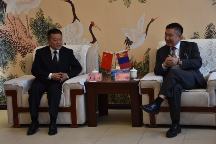 王永明书记对蒙古国立教育大学满达贺校长一行来访我校表示热烈欢迎,并向客人简要介绍了我校概况,国际合作交流情况以及同蒙古国立教育大学合作推进情况。今年,我校将选派9名教师赴蒙古国立教育大学攻读博士学位。