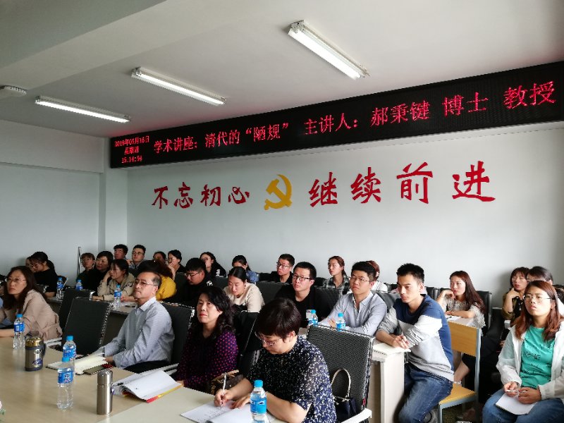 为了打造中国史一级硕士学科点的学术品牌,进一步提升学科竞争力,5月16日下午,应历史文化学院邀请,中央财经大学博士、教授郝秉键来我校做了题为“清代的陋规”的学术报告。报告会由历史文化学院院长胡琮禹主持。历史学专业的全体教师、硕士研究生及部分本科生聆听了报告。