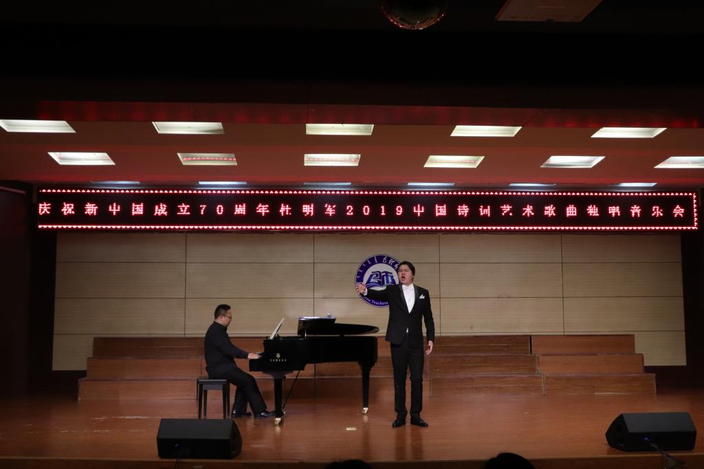 本次活动由我校、包头市音乐家协会、长沙歌舞剧院共同主办,包头师范学院音乐学院承办。男低音歌唱家杜明军在音乐会中为大家演唱了14首中国艺术歌曲,曲目内容包括从先秦《诗经》、唐宋诗词以及近现代诗词等系列声乐作品。杜明军通过搜集、整理、移调、实践等工作,罗列出了一套适合中、低声部演唱的中国诗词艺术歌曲,并将一些优秀的诗词音乐,通过音乐会形式,向大家展示音乐、诗词之美,弘扬中华传统文化,为其传承和发展略献绵薄之力。(音乐学院)
