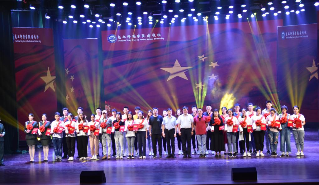 晚会中,党委委员、副院长施纪华代表学校为国旗班授予了“国防教育先进集体”荣誉奖牌,并与呼禾部长、刘运合老师和班主任李胜强老师为身着荣誉大红花的全体2019届老队员颁发了荣誉证书和纪念品。最后,晚会在大合唱《祖国不会忘记》中落下帷幕。
