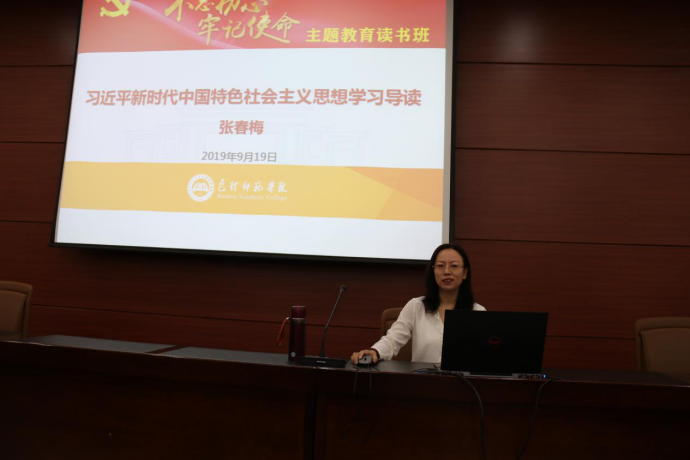 9月19日上午,马克思主义学院教师、自治区、包头市思政课名师工作室负责人张春梅教授从“不忘初心、牢记使命”主题教育的提出、习近平新时代中国特色社会主义思想提出的背景及重大意义、深刻学习领会习近平新时代中国特色社会主义思想、如何深入贯彻落实习近平新时代中国特色社会主义思想等四个方面进行了学习导读,帮助党员干部更好地学习理解掌握习近平新时代中国特色社会主义思想。