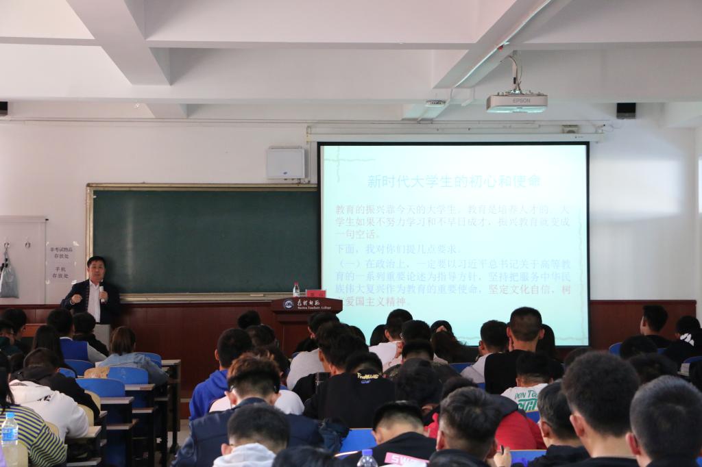 双山老师从“习近平总书记关于‘不忘初心,牢记使命’的论述、教育的初心和使命、新时代大学生的初心和使命”三个方面为全体学生进行了详细的讲解。