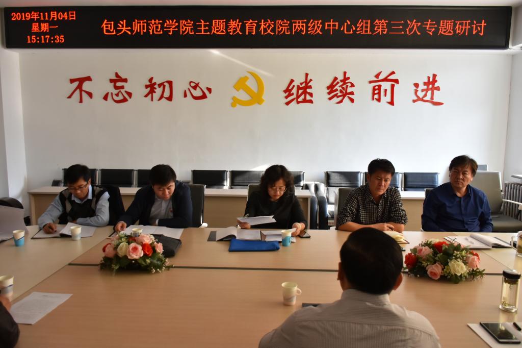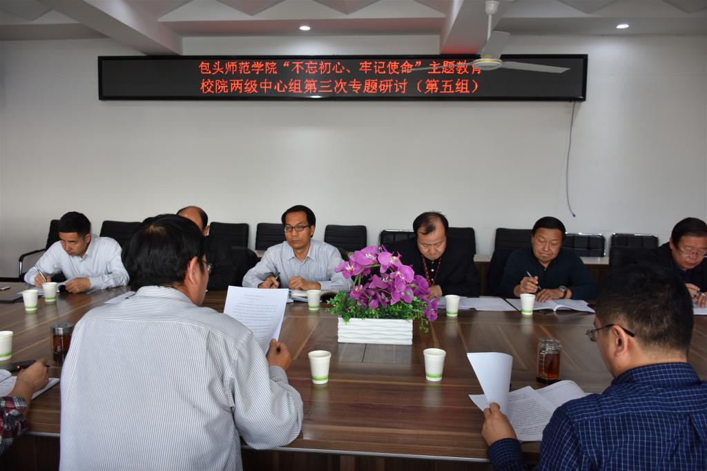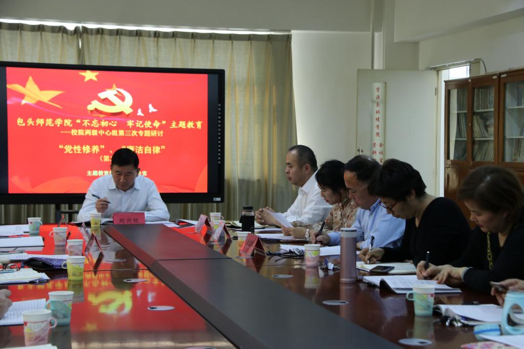 11月4日下午,根据包头师范学院“不忘初心,牢记使命”主题教育的工作安排,校院两级中心组以“加强党性修养,清正廉洁做表率”为主题召开了第三次专题研讨会。围绕“党性修养”“廉洁自律”两个专题开展了学习交流研讨。