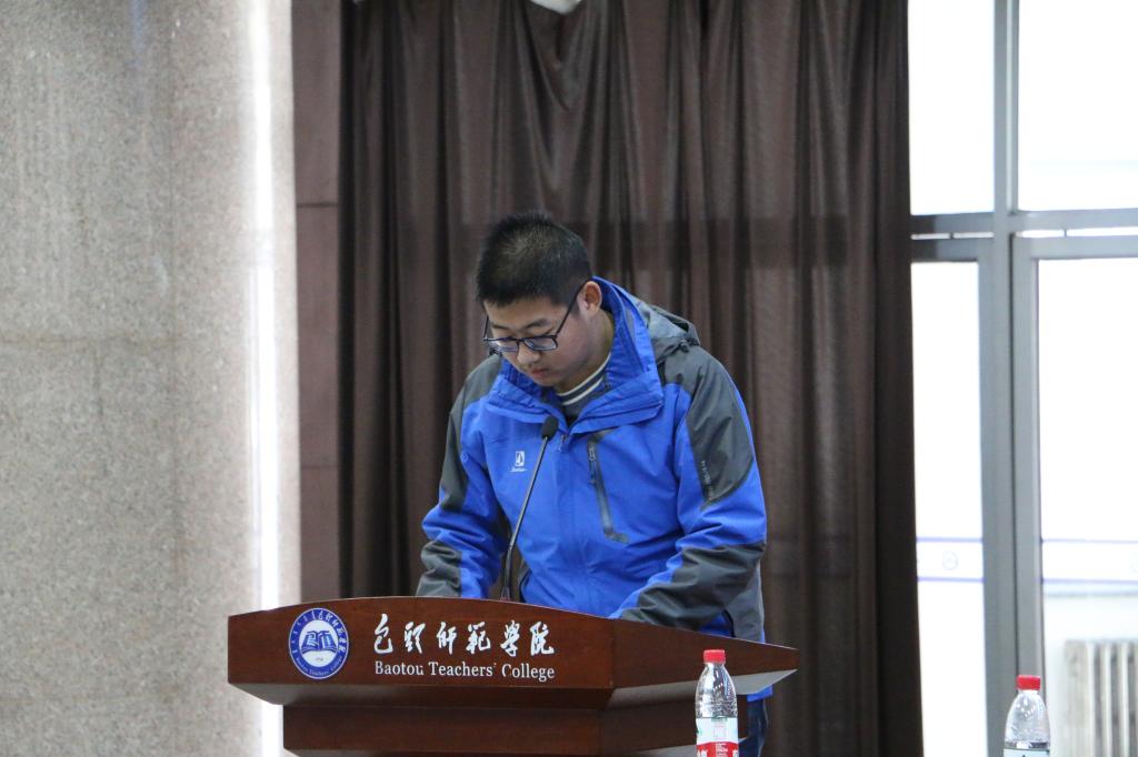 担任本次比赛的裁判长信息学院院长马占飞宣读了《竞赛细则》,并就细则进行了讲解和说明。随后,我校ACM竞赛协会会长智浩天代表全体参赛选手发言,他说这项竞赛的宗旨是在展示大学生分析、解决问题的能力,培养和提高编程思维的能力。他表示全体参赛队员会继续发扬勇于钻研、敢于拼搏的竞技精神,在短时间、高强度的程序设计脑力竞赛中顽强拼搏,超越自我。
