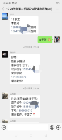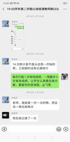 教师群里老师在为学生课外“室内锻炼”积极地解决学生反馈的各种问题