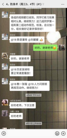 在教学内容设计时,老师们还制作了许多体育教学资源或将过去录制的技术动作视频、图片等教学资料拿出来与学生分享,通过教学中的师生互动,提高了体育在线课堂教学效果。