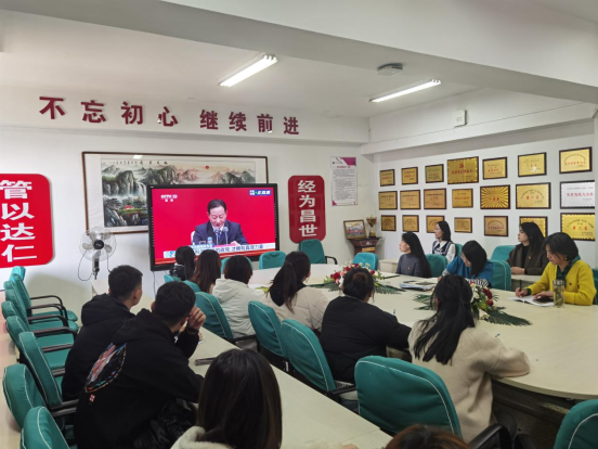 随后,学院教工党支部书记王一冰组织全体教师党员进行深入学习,并交流学习心得。教师党员何欣博士从八个方面讲述自己学习十九届六中全会精神的心得体会,表达了党员对中国共产党的忠诚。教师党员郑钰表示,自己很荣幸能在关键节点加入中国共产党,同时会在课堂上积极地向学生们传达十九届六中全会的精神,与学生们一起见证历史、创造历史。教工党支部书记王一冰总结时勉励教师党员,作为党员,作为人民教师,我们需要培养学生家国情怀,任重而道远,一刻也不能放松。