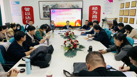 中国共产党第十九届中央委员会第六次全体会议于2021年11月8日至11日在北京召开。经济与管理学院党总支组织师生深入学习,迅速掀起学习贯彻党的十九届六中全会精神的热潮。