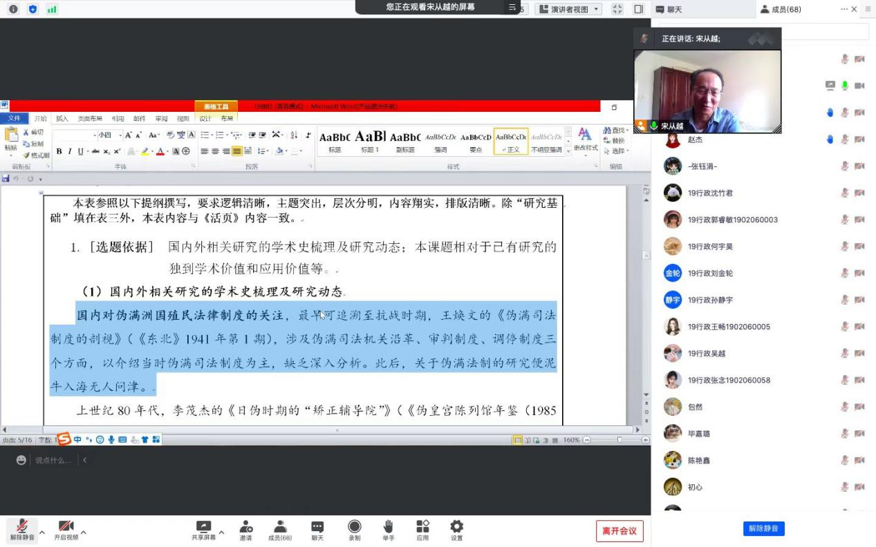 此次论坛由政治与法律学院副院长李霞主持,全校70余名师生线上参与,宋从越博士以“我的科研小史”为题,从自身科研经历讲起,同师生们分享近年来科研的经验和收获。宋博士从“如何成为今天的我、胸中要有大格局、把事情做到极致、形成稳定研究方向、学术交流很重要”五个方面,以自己的课题申报材料为例,讲解了课题申报的注意事项,为师生们的科学研究之路提供了有益的帮助和启示。在讲座后的互动环节,参加活动的师生积极发言、参与讨论,大家都纷纷表示,听了宋博士的分享受益匪浅,对大家的科研工作有很好的帮助和指导。