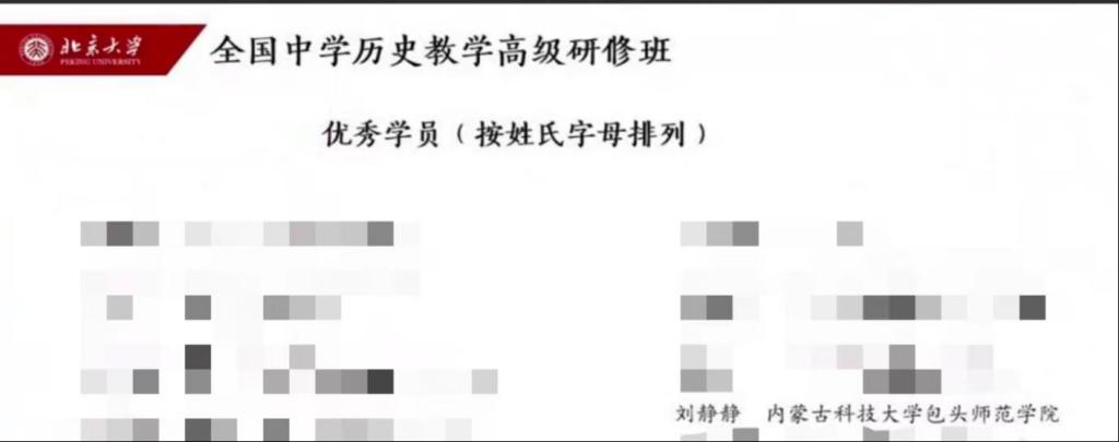 将近一个多月的学习,刘静静老师收获颇丰,思考了很多。在面对高强度的学习,刘静静老师没有丝毫懈怠,在听课过程中认真仔细记录笔记,在课堂环节和专家老师积极互动,与不同学员分享心得碰撞思维火花。在8月30日的结业仪式中,刘静静老师被评为“北京大学全国历史教师高级研修班的优秀学员”。(历史文化学院)