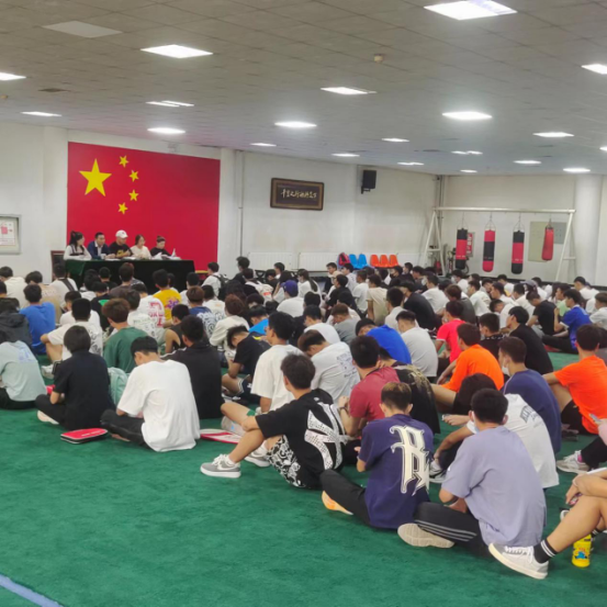 尚岩老师代表学院对全体新生的到来表示热烈的欢迎,并为同学们讲解了校规校纪,以及在今后几天军训期间的注意事项和管理规定。强调同学们要端正自己的态度,严格服从命令,做到全力以赴,圆满完成训练任务。