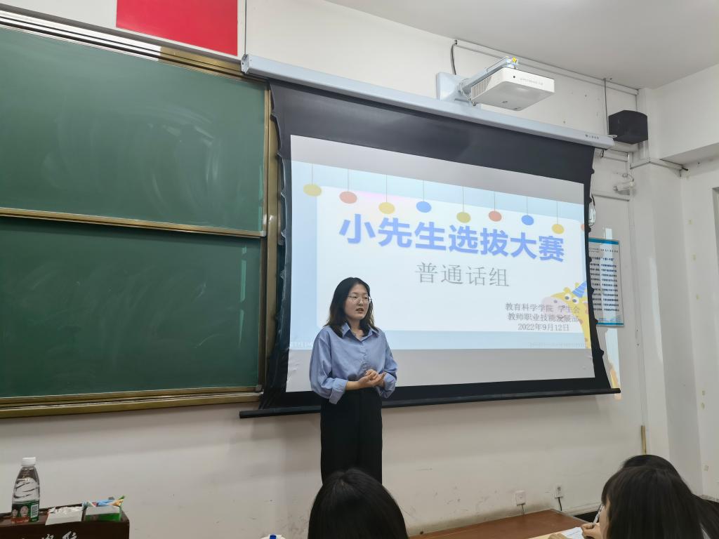 为了对2022级新生早自习进行书法和普通话的辅导训练,提升师范生教师职业技能,营造良好的学习氛围,教育科学学院学生会教师职业技能发展部于9月12日晚在博东411、博西402、博西403举办“小先生”选拔大赛活动。“小先生”选拔分为普通话组和书法组。普通话组由辅导员王璐然、曹媛及主席团成员担任评委,书法组由辅导员刘佳琪、海林及上一学年优秀“小先生”担任评委。