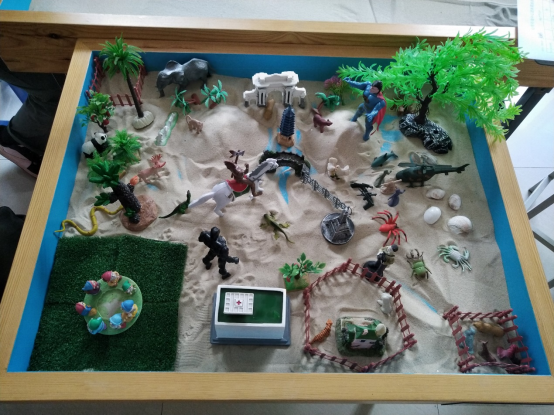 本次活动由心理咨询中心张鹏老师主持,邀请了来自马克思主义学院预科文科班和预科理科班各4名新同学参与活动。8名同学按次序进行沙具的摆放,共同制作了一个名为“独一无二的奇幻森林”的箱庭作品,并且分享了制作沙盘时的心得体会,活动气氛温馨轻松。