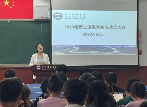 刘晓堂老师为19历史班同学介绍讲解了教育实习中的具体要求:一是绷紧安全这根弦。做好自我防护,严格按照《包头师范学院2022秋季学期新冠疫情防控实施方案》疫情防控要求进行相关防疫工作,保证自身安全,自觉做好防护;二是严格遵守实习要求。实习期间,请严格按照实习学校要求进行实习(包括实习时间等),不得随意缺勤、迟到等。如若请假,请严格按照请假程序申请;三是严格规范自己的行为规范,自尊自爱,以一名教师的要求严格要求自己的行为规范;四是认真完成教学实习任务,完成实习班主任工作同时,进行教育调研,撰写调研报告,上交不少于10节课的实习听课记录,10个教案和调研报告一份。代小老师和李慧茹老师针对往年教育实习的经验给予大家指导,同学们受益匪浅。
