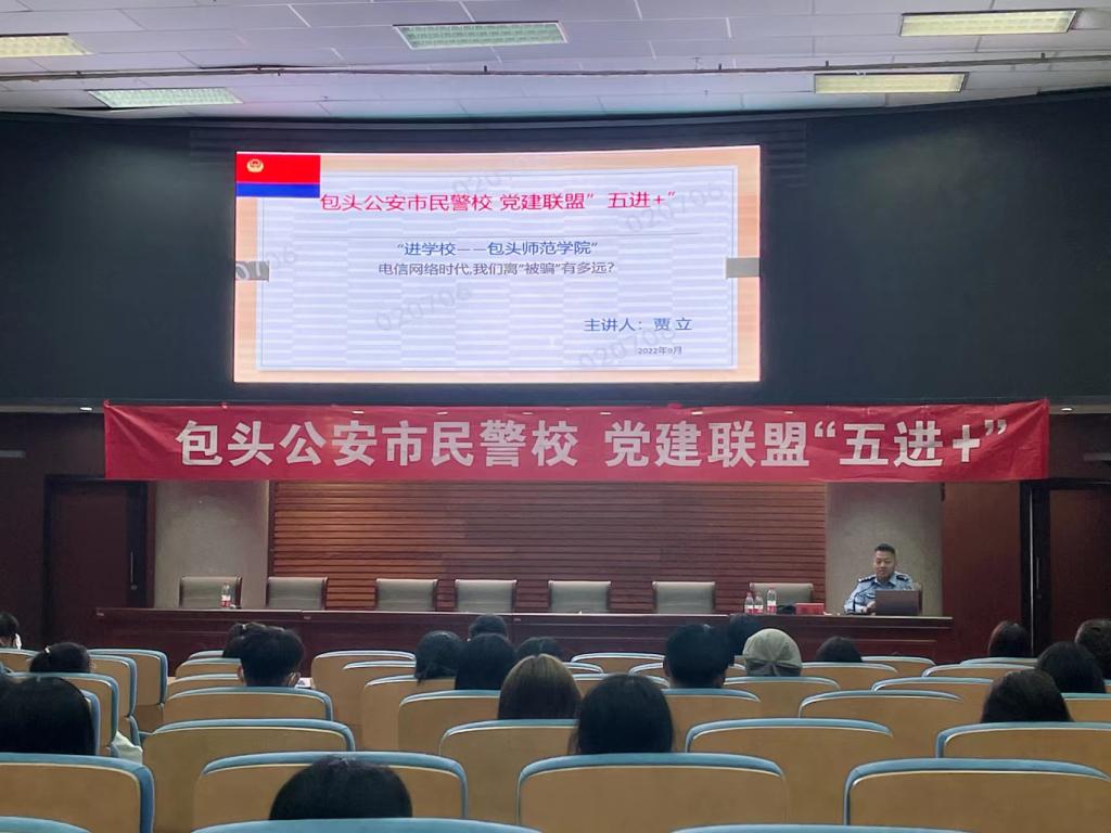 为切实提高学生的反诈意识、识别和防范电信诈骗的能力,有效预防和减少校园电信网络诈骗案件的发生,9月21日,包头公安市民警校贾立教官走进外国语学院为2022级新生开展了反诈宣传教育知识主题讲座。