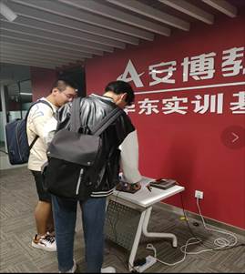 为便于大家在实训园区与生活区之间往返,减少陌生接触,防范疫情传播,基地特为学员定制班车线路,迎着清晨的阳光,呼吸着清新空气,开启了一天的学习。为便于学员后期入职能尽快融入企业,基地采用公司管理模式,每日上下班指纹打卡,化身一位位“小职员”。