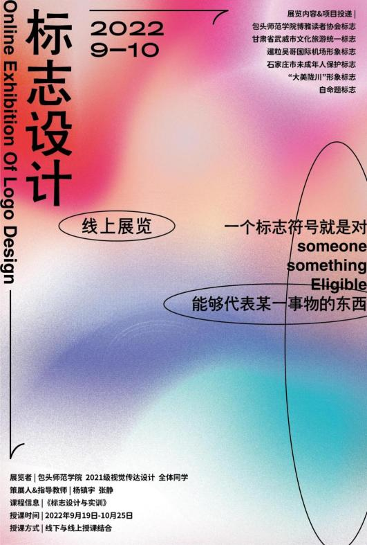 由于疫情影响,美术学院专业课程从线下转为线上,同学们在上网课的同时也要和大家一起抗击疫情,这使这一阶段的生活变得更有记忆点,好在“守得云开见月明,静待花开终”,疫情好转的同时大家在设计上的投入也同样有了回报,每个人都肉眼可见的进步便是最大的收获。同学们从设计的思考和实践中体会到设计带来久旱逢甘霖的舒畅,并且用作品在设计行业中有所建树。在2021级视觉传达设计专业学生的标志设计课程里,主要掌握了标志设计的工作流程以及在设计前期对相关内容的调研与分析,掌握了要投递项目的核心关键词和要求,通过图形、排版、配色的综合呈现出一个精准、美观且富有创意的标志。