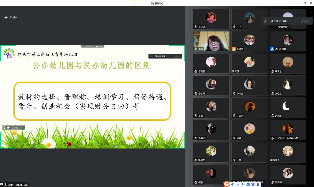 为使学前教育专业学生尽早了解就业形势,转变择业就业观念,找准就业方向,优化职业发展路径,教育科学学院于12月1日下午15:00在腾讯会议举办“‘职’面未来勇攀登,学前骄子‘启’新程”就业线上宣讲会。
