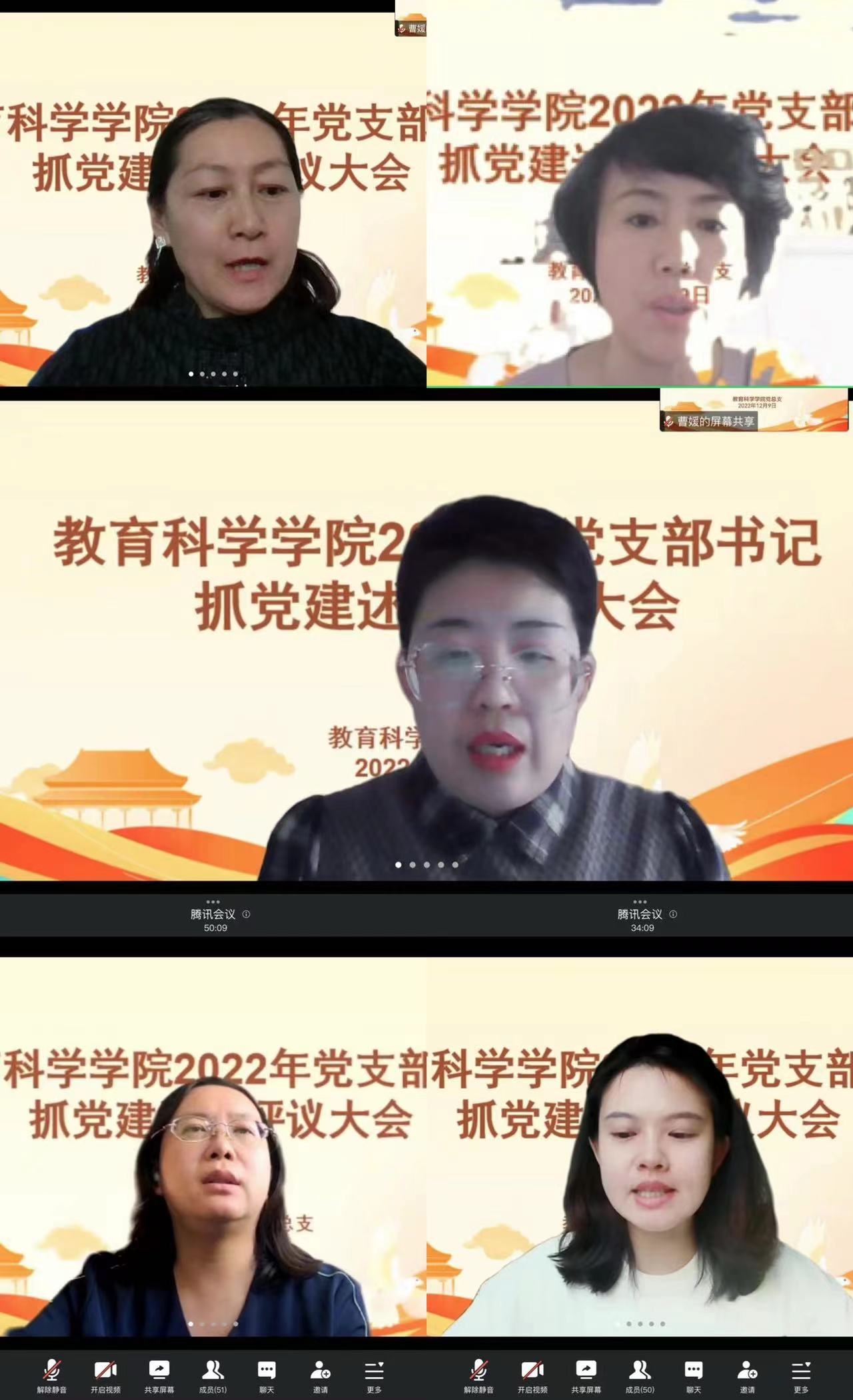 根据《党委组织部关于做好2022年度党组织书记抓基层党建述职评议考核工作的通知》要求,2022年12月9日下午15:00,教育科学学院在腾讯会议召开党支部书记抓党建述职评议大会。教育科学学院党总支委员、党支部书记、全体党员教师和20名学生党员代表参加了会议。会议由党总支副书记李燕主持。