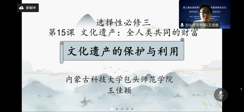 2019级历史班师范生王佳颖同学会前提交了教学片段,并在12月11日上午进行了教学展示和说课展示。
