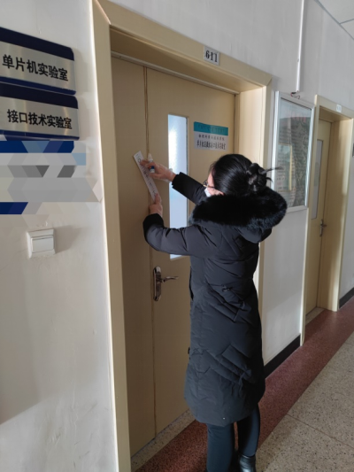 排查人员深入实验室现场各个角落,集中排查实验室用水、用电、消防和可能存在的安全隐患,对于寒假期间不使用的实验室,经断水、断电、暖气检查、关闭门窗后粘贴了封条。