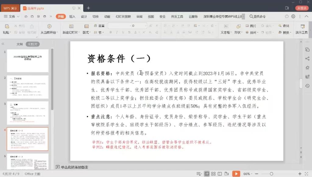 学工办负责人陈丽芳老师详细讲解了选调生报考资格、条件以及报考信息填写注意事项等。