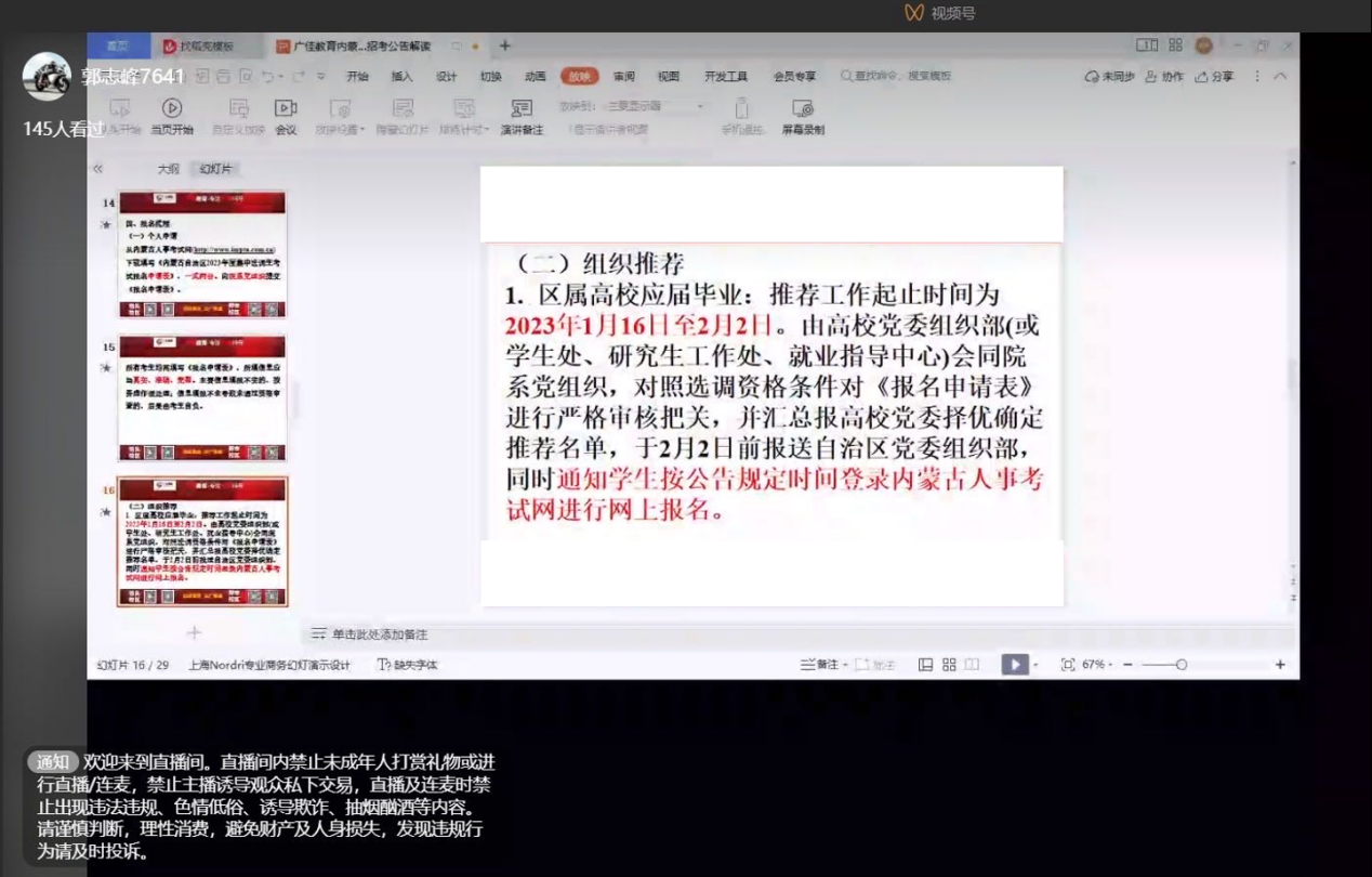 为帮助毕业生准确把握2023年内蒙古自治区集中选调应届优秀大学毕业生工作的相关报考条件、岗位,提升应试备考能力,1月19日,马克思主义学院邀请学院郭志锋老师就2023年选调生招录政策进行解读及相关就业指导。